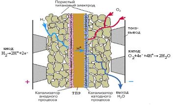 2. Топливные элементы: Полученный водород затем используется в топливных элементах, таких как протонно-обменные мембранные топливные ячейки (PEMFC). Внутри топливной ячейки водород реагирует с кислородом из воздуха на катодах через протонно-обменную мембрану, что приводит к выделению электричества и воды. Протоны перемещаются через мембрану, а электроны идут по внешней цепи, что создает электрический ток.